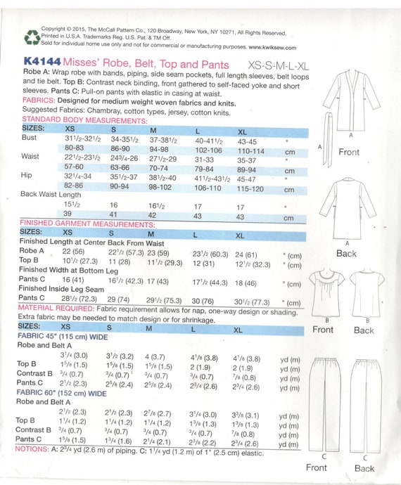 Bathrobe Kwik Sew 2646 Sewing Pattern Wrap Robes 5 Sizes For Sale Online Ebay